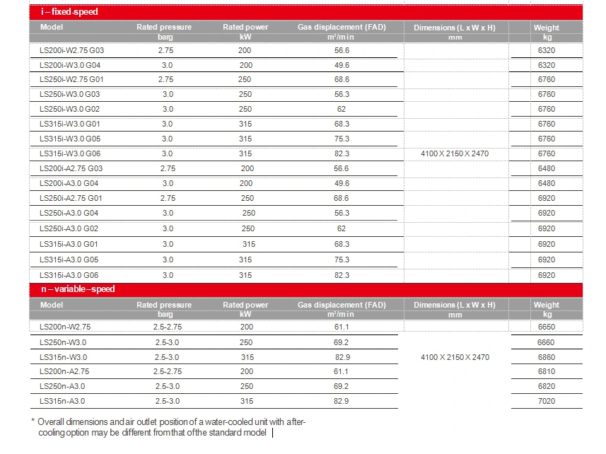 Kompresor udara sekrup bebas lenga LS seri 200-315kW