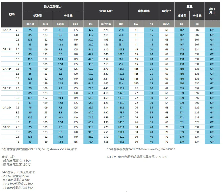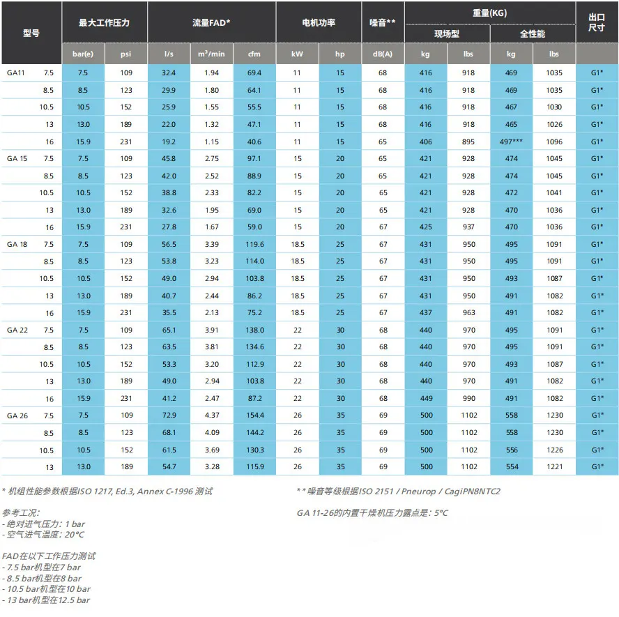 ·GA11-26 nganggo rotor anyar lan motor efisiensi dhuwur IE2/IE3, sing awet lan efisien.