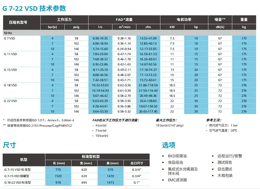 Teknologi drive kacepetan variabel saka G7-22 VSD mbisakake kacepetan motor kompresor kanggo cocog karo panjaluk udara sampeyan.