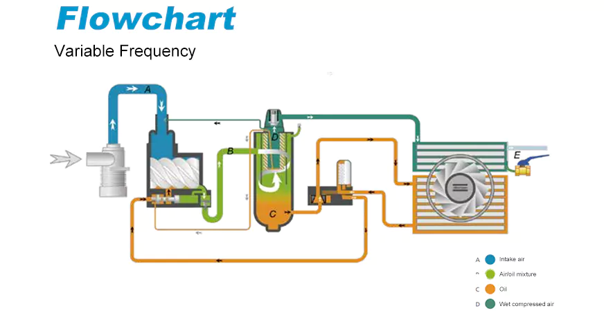Kompresor Udara Frekuensi Variabel VSD dirancang khusus kanggo operasi terus-terusan.