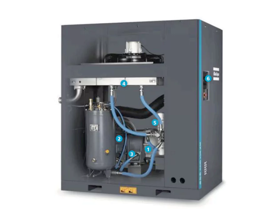 Kompresor Udara Frekuensi Variabel VSD Atlas dirancang khusus kanggo operasi terus-terusan. Sistem drive nganggo motor magnet permanen sing efisien, sing bisa entuk efek pendinginan minyak sing apik banget. Teknologi VSD bisa ngirit energi nganti 35%, lan jejak sing luwih cilik njamin keluwesan instalasi.